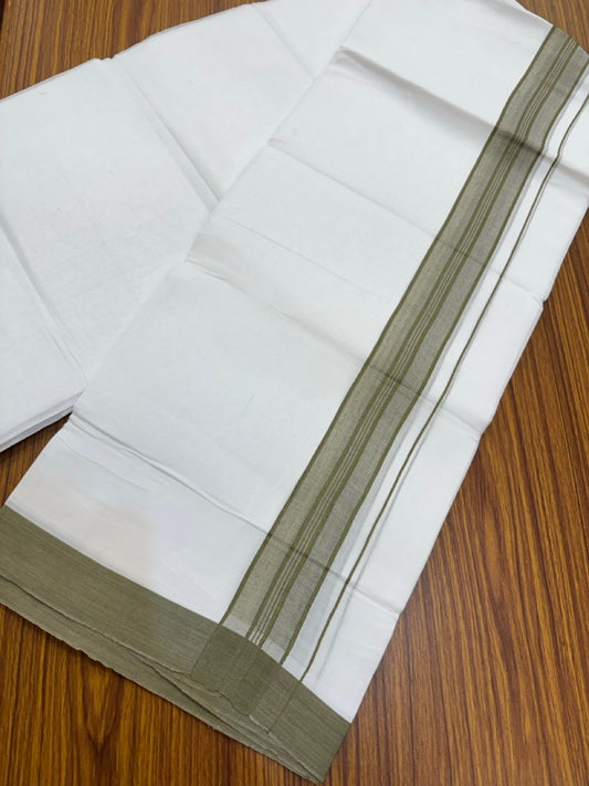 4.5 Meters (10 Muzham) - Pure white double 25% Discount ! KaithariKada Balaramapuram - 100% Pure Cotton 100x80 - Mundu/Dothi - 1.5 inch Sage green Shaded Kara - 57 KK5258 THI