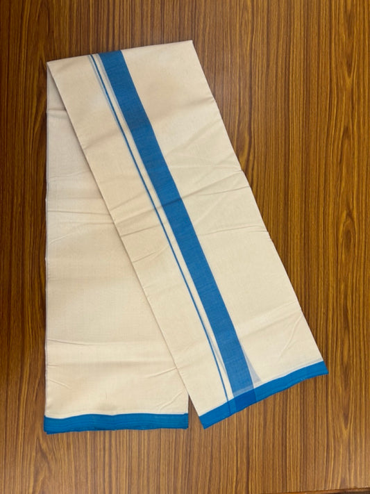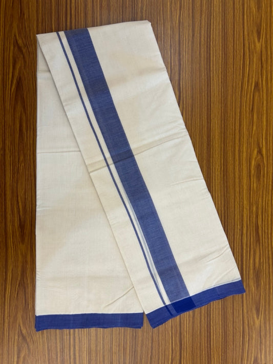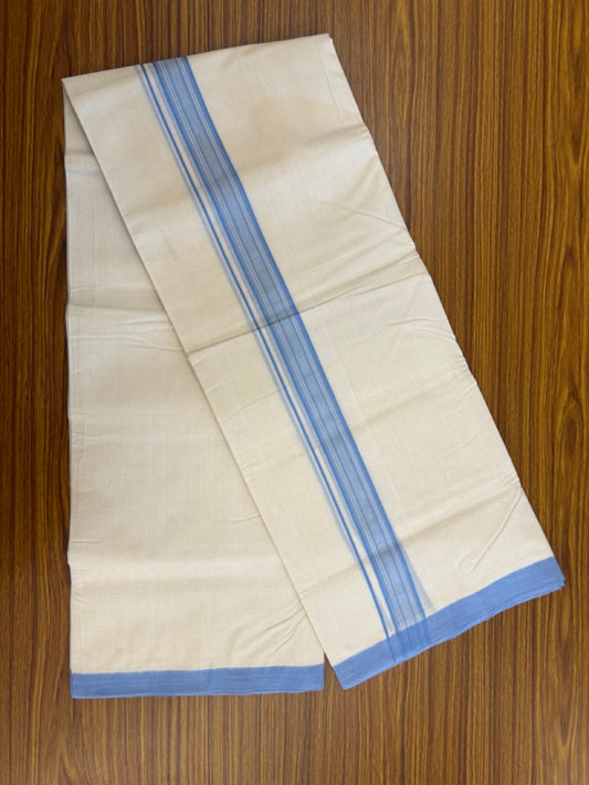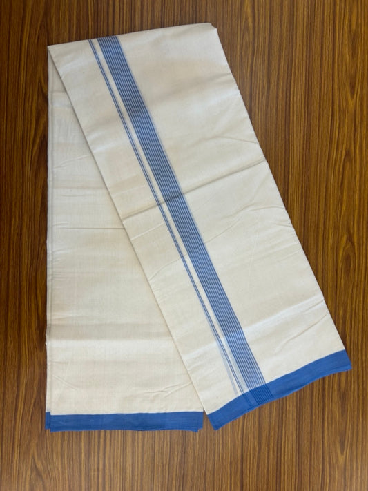 25% Discount ! KaithariKada Handloom Millpaav Balaramapuram - 100% PURE Cotton OFF White (Unbleached) Double Mundu/Dothi - 80x90 - 1.25 inch Blue Shaded Striped Kara 4 Meters (8.5 Muzham) - 29 KK5256 RAM