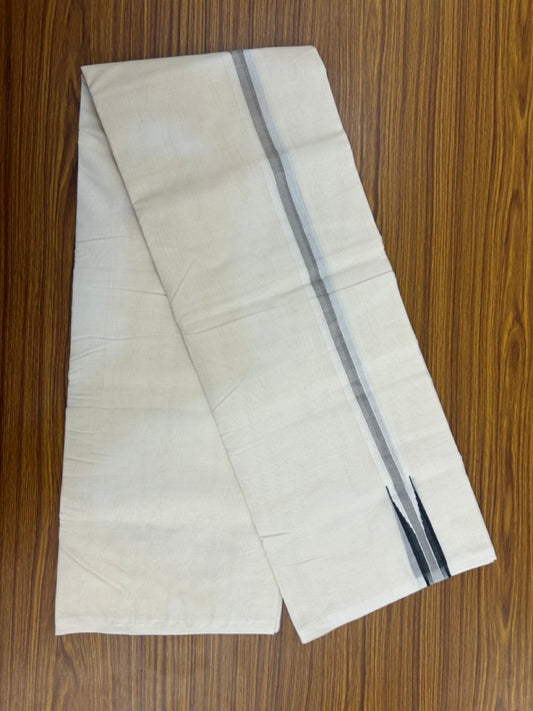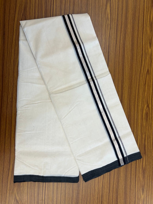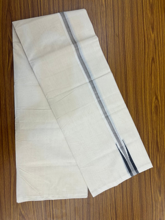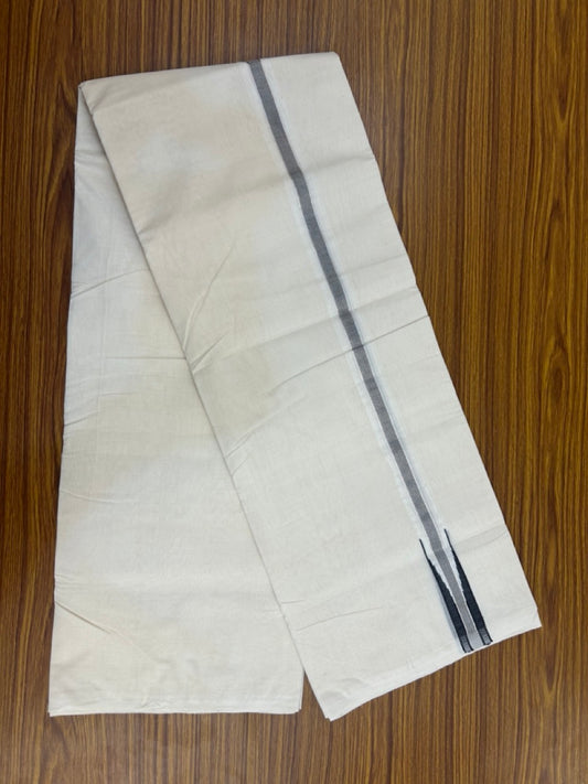 25% Discount ! KaithariKada Handloom Millpaav Balaramapuram - 100% Pure Cotton Off White (Unbleached) Double Mundu/Dhoti - 80x90 - 1 inch Silver Kasav & Black Kara 4 Meters (8.5 Muzham) - 30 KK5256 RAM