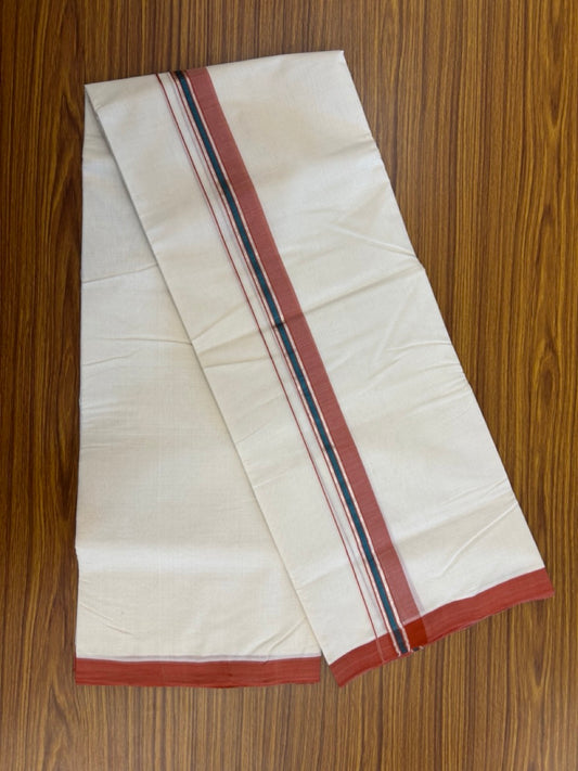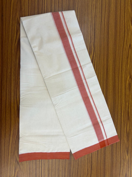 25% Discount! KaithariKada Handloom Millpaav Balaramapuram - Cotton Double Mundu/Dhoti Off white (Unbleached) - 80x90 - 1.25 inch Brick Orange Mulloth Kara 3.60 meter (8 Muzham) - 49 KK5256 RAM