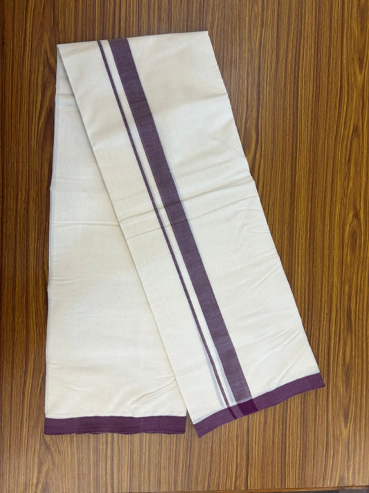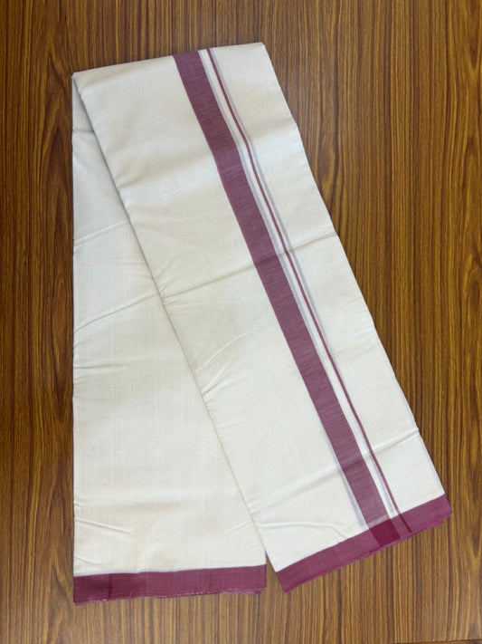 25% Discount! KaithariKada Handloom Millpaav Balaramapuram - Cotton Double Mundu/Dhoti Off white (Unbleached) - 80x90 - 1 inch Wine Purple Mulloth Kara 3.60 meter (8 Muzham) - 48 KK5256 RAM