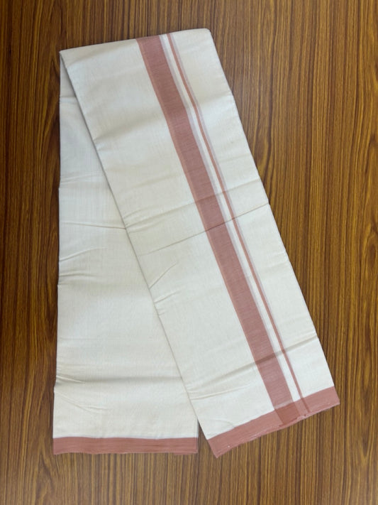 25% Discount! KaithariKada Handloom Millpaav Balaramapuram - Cotton Double Mundu/Dhoti Off white (Unbleached) - 80x90 - 1.25 inch Dusty Peach Mulloth Kara 3.60 meter (8 Muzham) - 51 KK5256 RAM