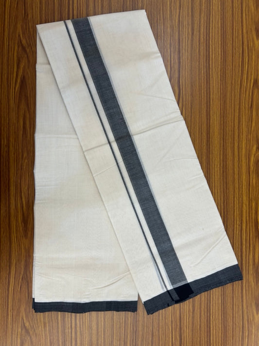 25% Discount! KaithariKada Handloom Millpaav Balaramapuram - Cotton Double Mundu/Dhoti Off white (Unbleached) - 80x90 - 1.25 inch Black Mulloth Kara 3.60 meter (8 Muzham) - 45 KK5256 RAM