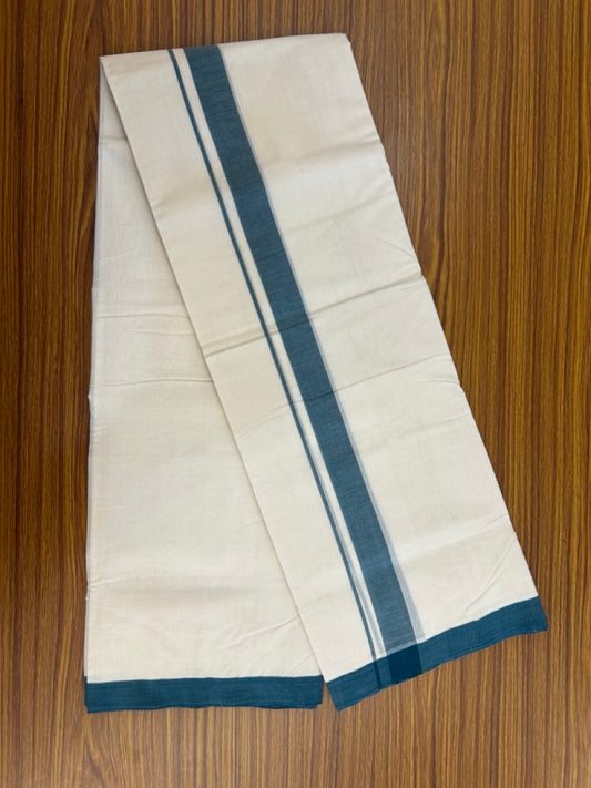 25% Discount! KaithariKada Handloom Millpaav Balaramapuram - Cotton Double Mundu/Dhoti Off white (Unbleached) - 80x90 - 1.25 inch Peacock Green Mulloth Kara 3.60 meter (8 Muzham) - 46 KK5256 RAM