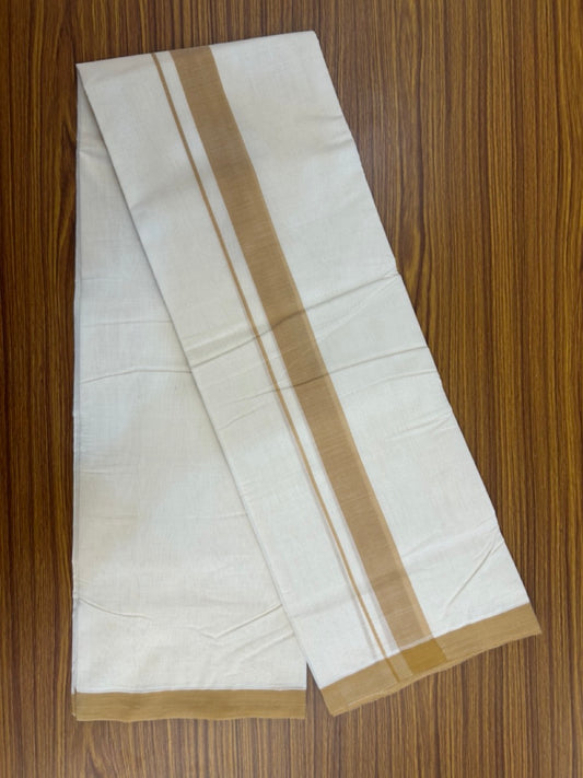 25% Discount! KaithariKada Handloom Millpaav Balaramapuram - Cotton Double Mundu/Dhoti Off white (Unbleached) - 80x90 - 1.5 inch Mustard Brown Mulloth Kara 3.60 meter (8 Muzham) - 52 KK5256 RAM