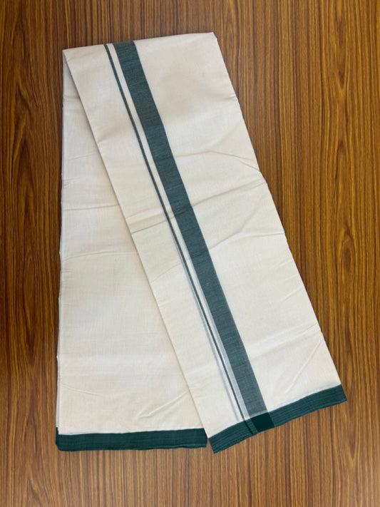 25% Discount! KaithariKada Handloom Millpaav Balaramapuram - Cotton Double Mundu/Dhoti Off white (Unbleached) - 80x90 - 1.25 inch Dark Green Mulloth Kara 3.60 meter (8 Muzham) - 44 KK5256 RAM