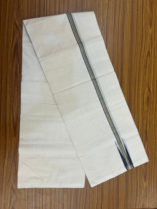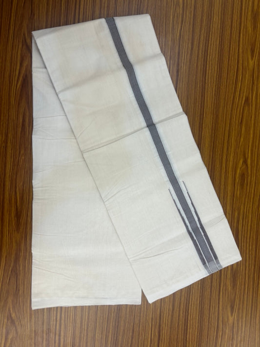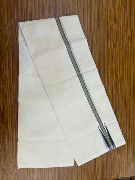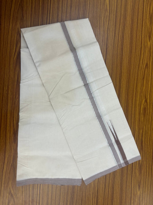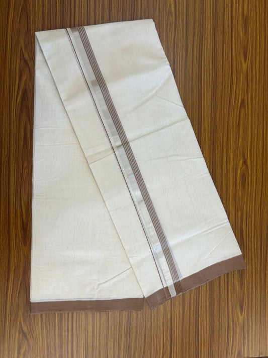 25% Discount ! KaithariKada Handloom Millpaav Balaramapuram - 100% Pure Cotton Off White (Unbleached) Double Mundu/Dothi - 80x90 - 1.5 inch Silver Kasav & Brown Striped Kara 4 Meters (8.5 Muzham) - 19 KK5256 RAM