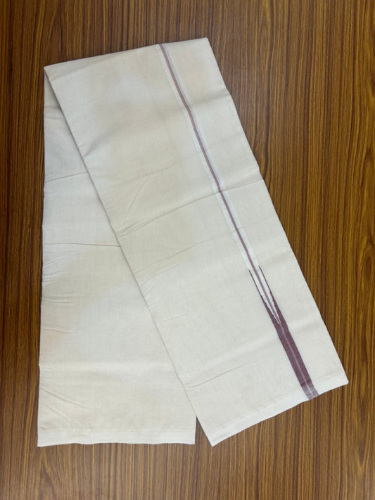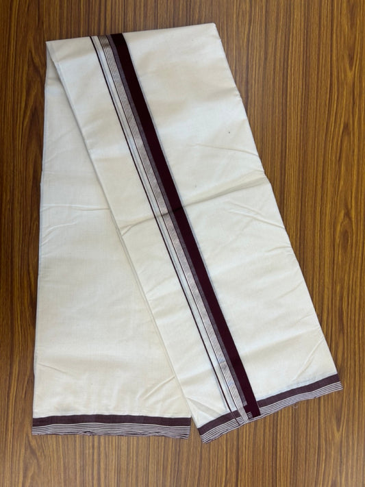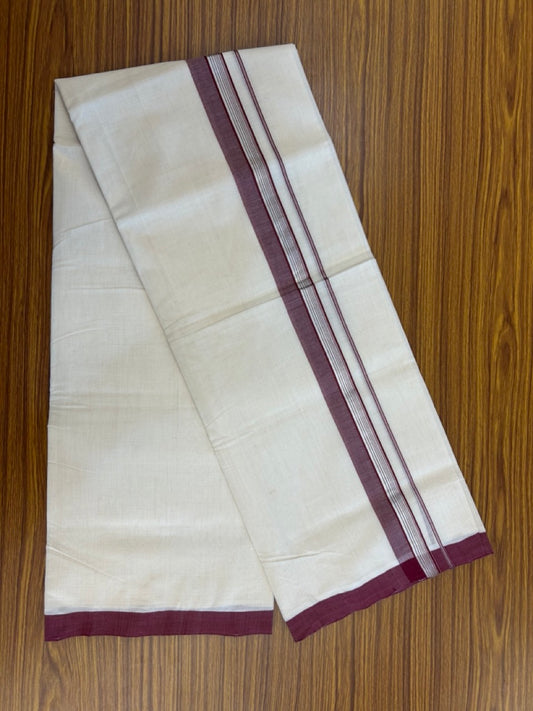 25% Discount ! KaithariKada Handloom Millpaav Balaramapuram - 100% Pure Cotton Off White (Unbleached) Double Mundu/Dhoti - 80x90 - 1.5 inch Silver Kasav & Dark Maroon Shaded Striped Kara 4 Meters (8.5 Muzham) - 22 KK5256 RAM