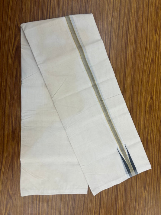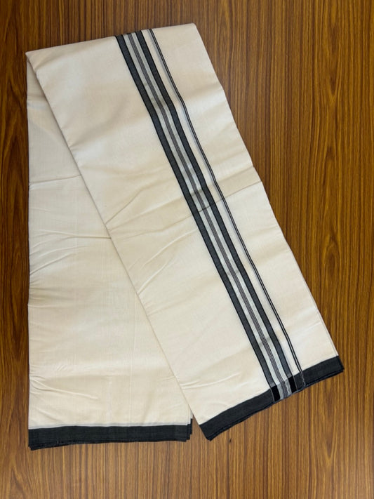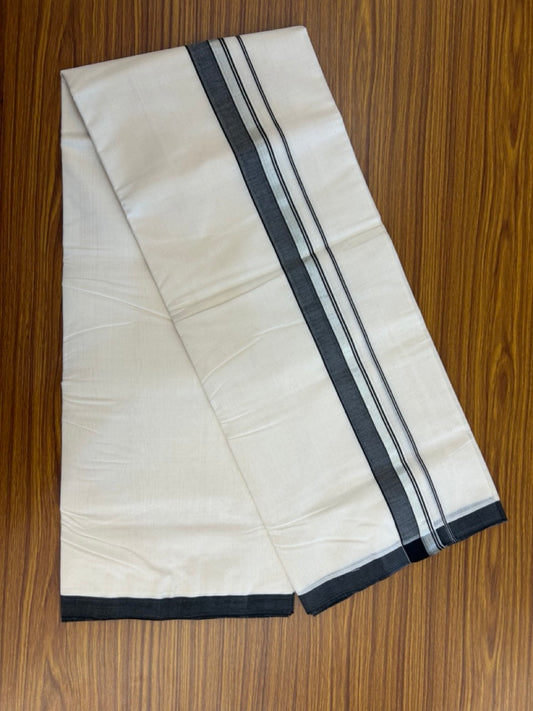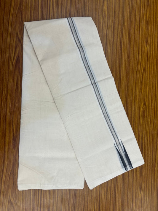 25% Discount ! KaithariKada Handloom Millpaav Balaramapuram - 100% Pure Cotton Off White (Unbleached) Double Mundu/Dothi - 80x90 - 1.5 inch Silver Kasav & Black Shaded Striped Kara 4 Meters (8.5 Muzham) - 23 KK5256 RAM