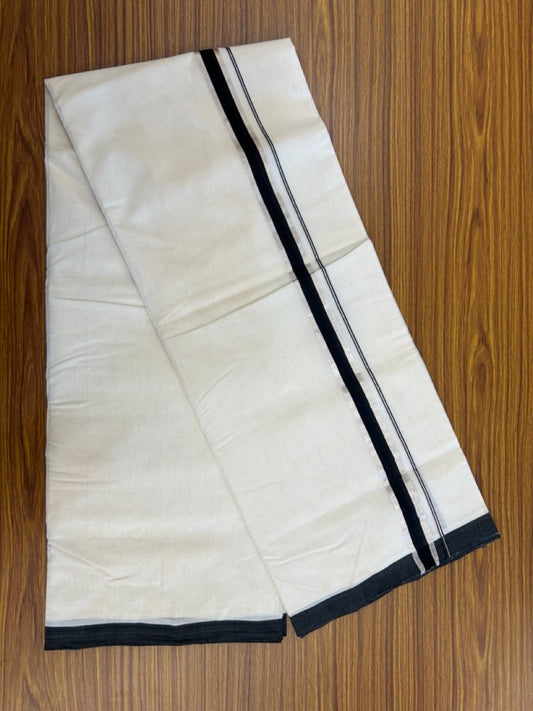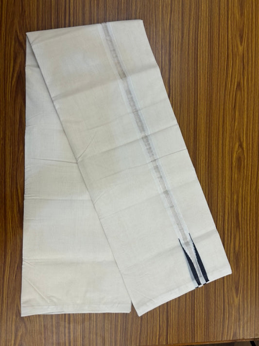 25% Discount ! KaithariKada Handloom Millpaav Balaramapuram - 100% Pure Cotton Off White (Unbleached) Double Mund/Dhoti - 80x90 - 1 inch Silver Kasav & Black Kara 4 Meters (8.5 Muzham) - 25 KK5256 RAM