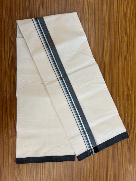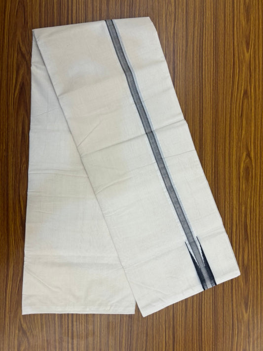 25% Discount ! KaithariKada Handloom Millpaav Balaramapuram - 100% Pure Cotton Off White (Unbleached) Double Mundu/Dothi - 80x90 - 1.5 inch Silver Kasav Peacock Blue & Black Shaded Striped Kara 4 Meters (8.5 Muzham) - 26 KK5256 RAM