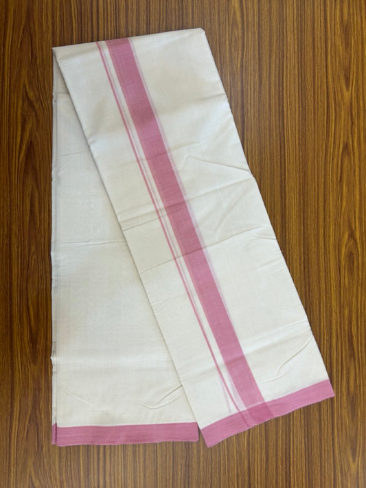 25% Discount! KaithariKada Handloom Millpaav Balaramapuram - Cotton Double Mundu/Dhoti Off white (Unbleached) - 80x90 - 1.25 inch Pink Mulloth Kara 3.60 meter (8 Muzham) - 40 KK5256 RAM