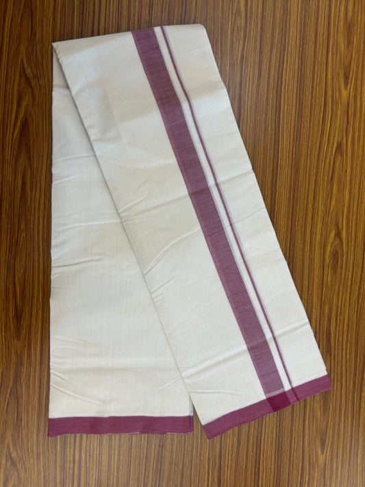 25% Discount! KaithariKada Handloom Millpaav Balaramapuram - Cotton Double Mundu/Dhoti Off white (Unbleached) - 80x90 - 1.25 inch Light Maroon Mulloth Kara 3.60 meter (8 Muzham) - 42 KK5256 RAM