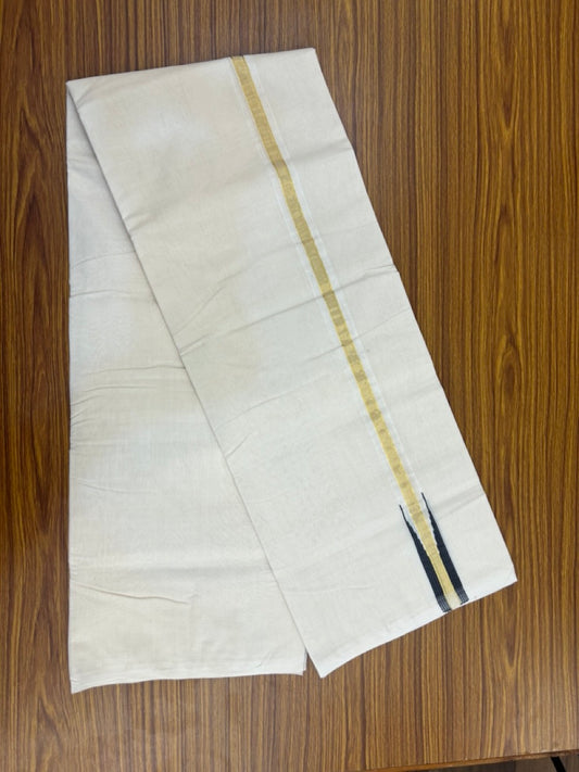 25% Discount ! KaithariKada Handloom Millpaav Balaramapuram - 100% Pure Cotton Off White Double - (Unbleached) Mundu/Dothi - 80X90 - 1 inch Puliyilakkara Gold Kasav & Black chutty Kara 4 mtr (8.5 Muzham) - 129 KK5236 RAM