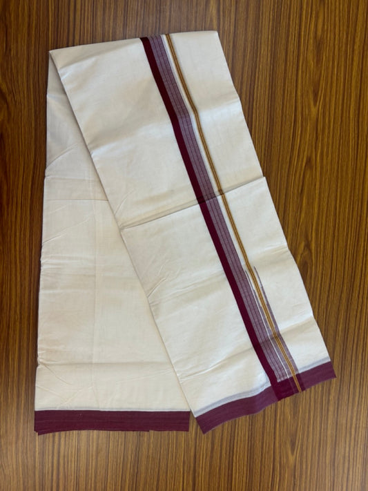 20% Discount ! KaithariKada Balaramapuram 100% Cotton Off White (Unbleached) Double Mundu/Dhoti - 80s - 1.5 inch Gold Kasav & Wine Purple Stripes Chutty kara 4 mtr (8.5 muzham) - 1 KK5302 MUT