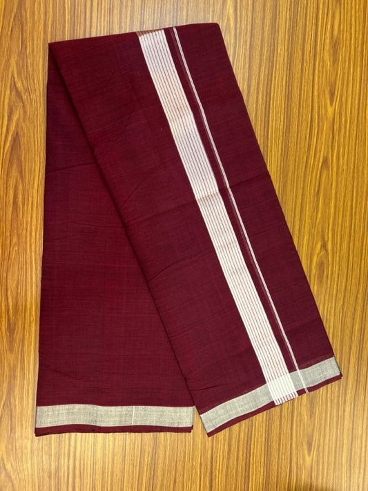 25% Discount! KaithariKada Handloom Unakkupaav Balaramapuram - 100% Cotton Double Mundu/Dhoti - Dark Maroon Colour Body - 1.75 inch Silver Kasavu Striped Kara - 30 KK5301 ABH