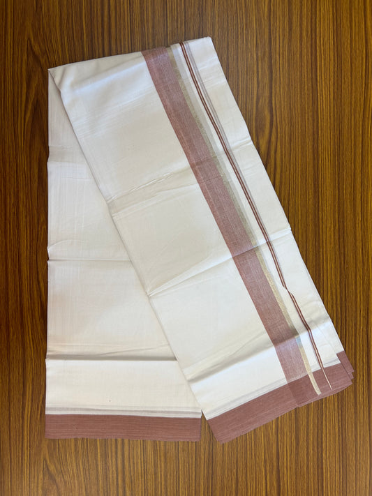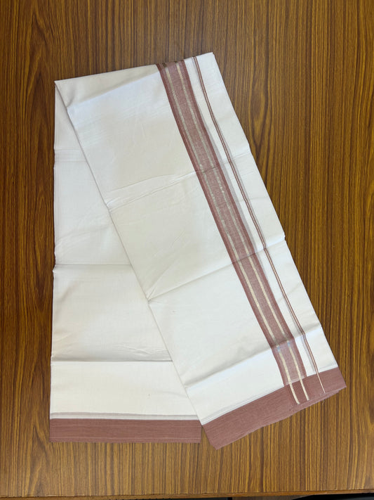 Short Dhoti Special - 28% Discount ! KaithariKada 100% Cotton Pure White Double Mundu / Dhoti - 100x80 - 45 inch Height 3.80 m Length 1.5 inch Brown Maroon Silver Kasav kara - 9 KK 5256 THI