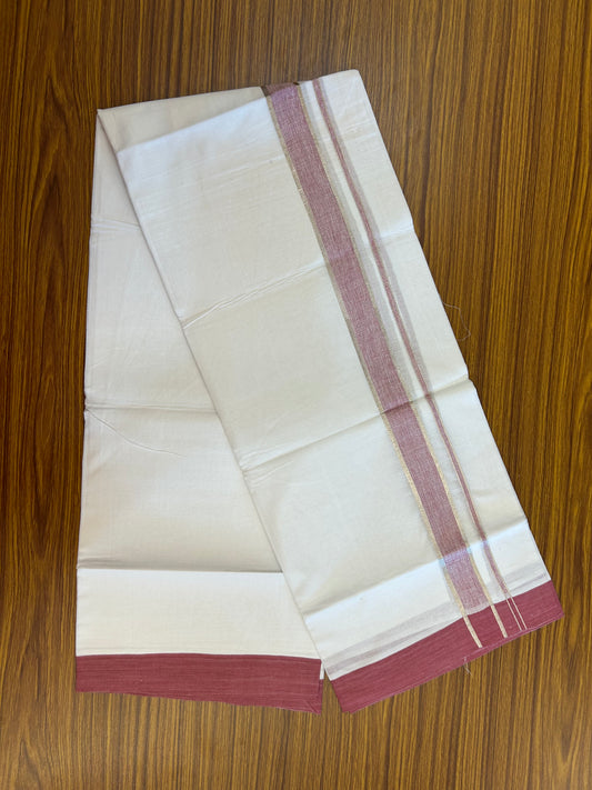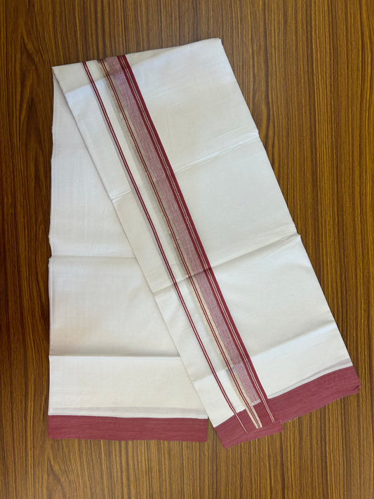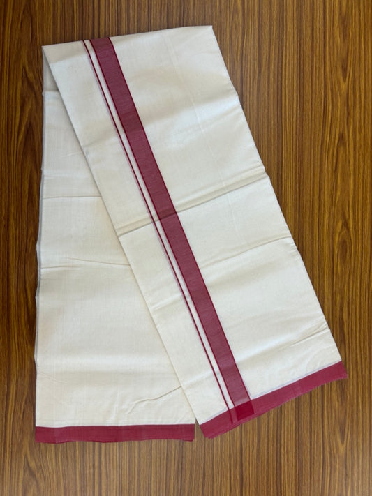 25% Discount ! KaithariKada Handloom Millpaav Balaramapuram - 100% Pure Cotton Off White (Unbleached) Double Mundu/Dhoti - 80x90 - 1 inch Maroon Mulloth Kara 4 Meters (8.5 Muzham) - 13 KK5256 RAM