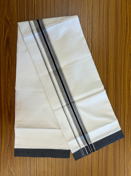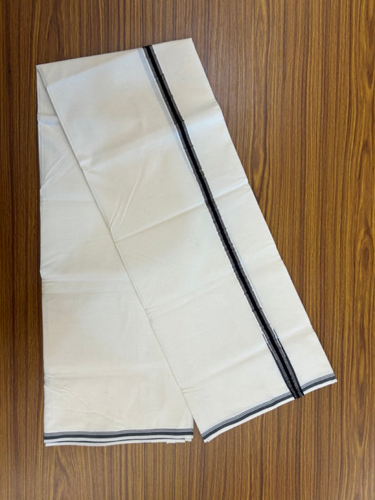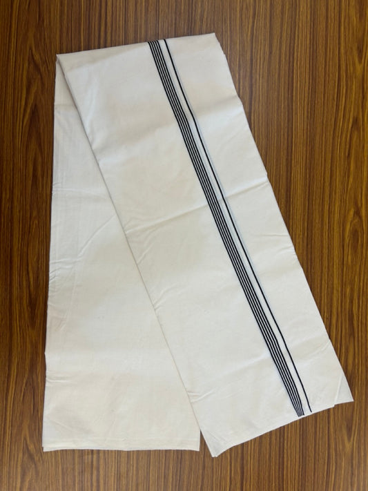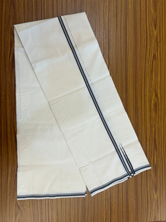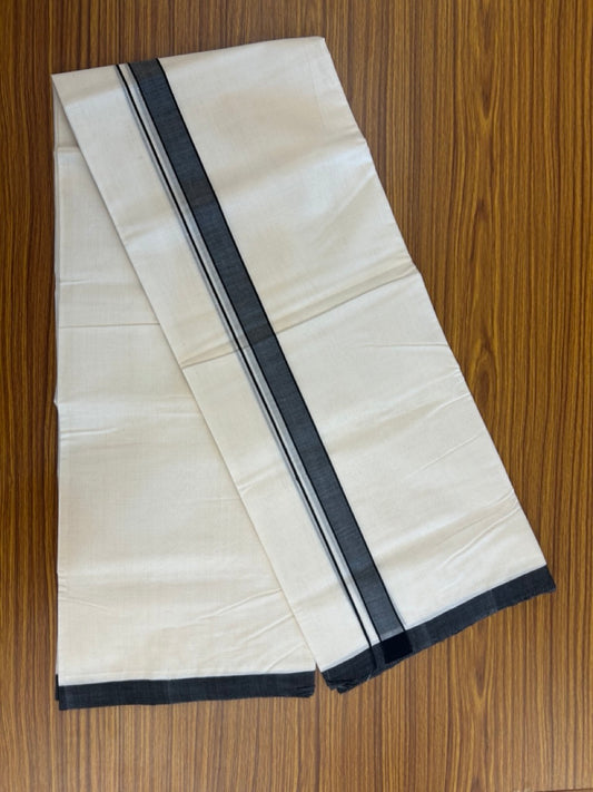 25% Discount ! KaithariKada Handloom Millpaav Balaramapuram - 100% Pure Cotton Off White (Unbleached) Double Mundu/Dhoti - 80x90 - 1.25 inch Black Mulloth Kara 4 Meters (8.5 Muzham) - 10 KK5256 RAM