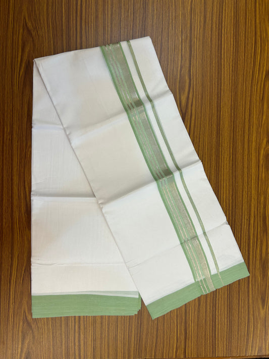 Short Dhoti Special - 28% Discount ! KaithariKada 100% Cotton Pure White Double Mundu / Dhoti - 100x80 - 45 inch Height 3.80 m Length 1.5 inch Light Green Silver Kasav kara - 7 KK5258 THI