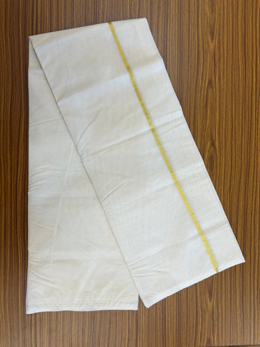 20% Discount KaithariKada Balaramapuram 100% Cotton Double Off white - (Unbleached) - Mundu/Dhoti - 100x100 - 0.25 inch Gold Kasav Kara - 4 KK5257 ASH