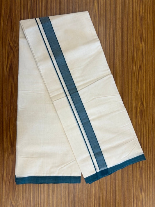 25% Discount ! KaithariKada Handloom Millpaav Balaramapuram - 100%Pure Cotton Off White (Unbleached) Double Mundu/Dhoti - 80x90 - 1.25 inch Peacock Blue Mulloth Kara 4 Meters (8.5 Muzham) - 11 KK5256 RAM