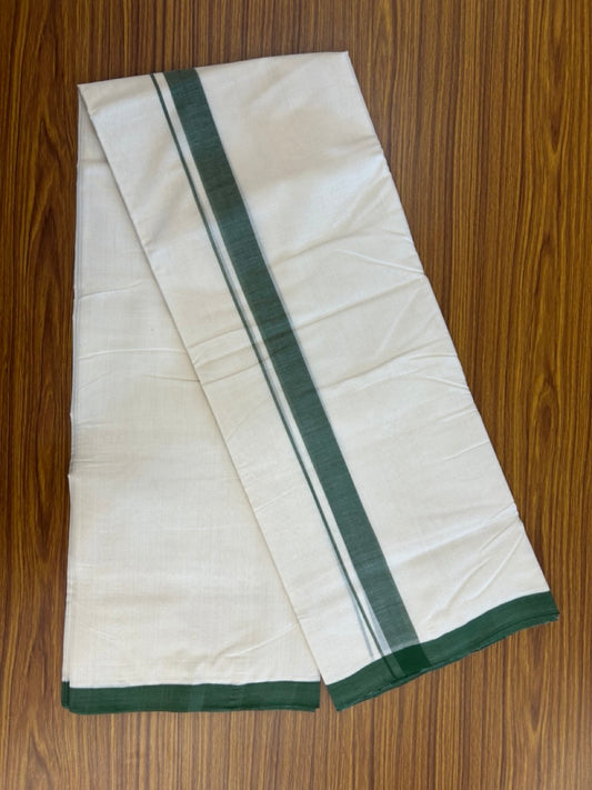 25% Discount ! KaithariKada Handloom Millpaav Balaramapuram - 100% Pure Cotton Off White (Unbleached) Double Mundu/Dothi - 80x90 - 1.25 inch Green Mulloth Kara 4 Meters (8.5 Muzham) - 12 KK5256 RAM