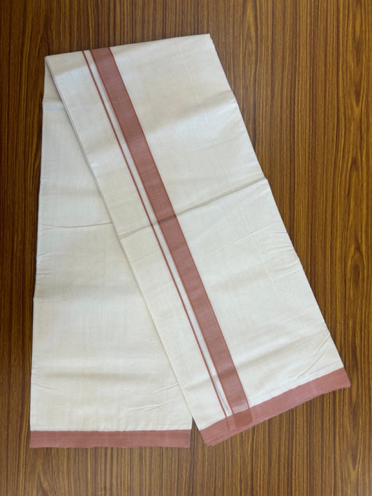 25% Discount ! KaithariKada Handloom Millpaav Balaramapuram - 100% Pure Cotton Off White (Unbleached) Double Mundu/Dhoti - 80x90 - 1 inch Light Pinkish Brown Mulloth Kara 4 Meters (8.5 Muzham) - 14 KK5256 RAM