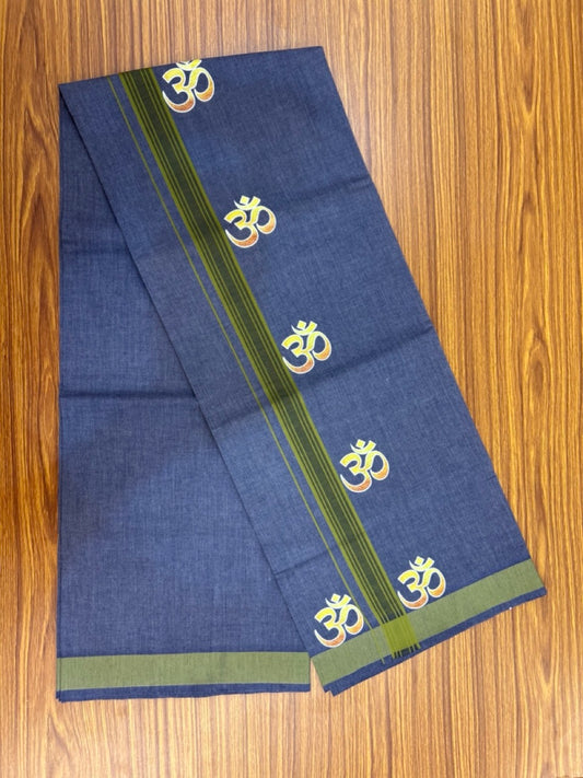 21% Discount ! Kaitharikada Pure Cotton - Single Kaily / Lungi - (40s) - 1.25 inch Light Green Striped Ohm Printed Design kara with Navy Blue Shaded colour body (2 meter / 4 muzham) - 34 KK8028 GAN