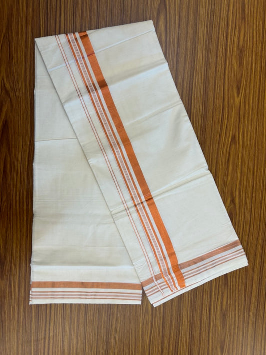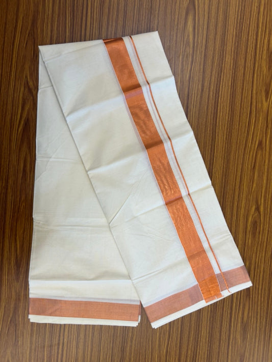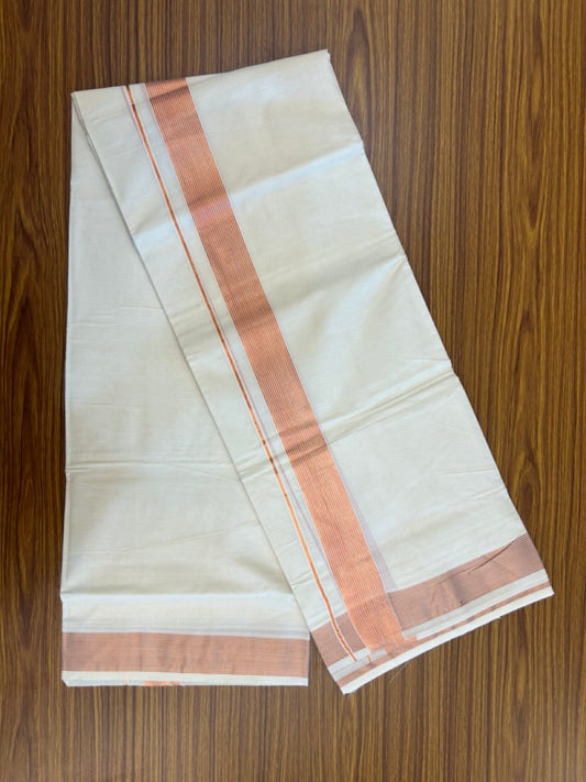 20% Discount! KaithariKada Balaramapuram 100% Cotton Double Off White - (Unbleached) Mundu/Dhoti - 80x80 - 1.5 inch Copper kasav Kara 4 mtrs - 4 KK5253 GAN