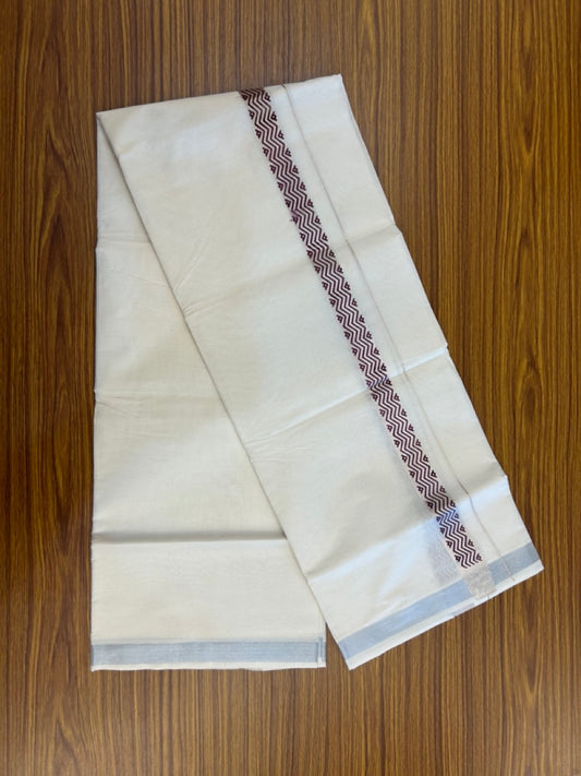 22% Discount!! KaithariKada Balaramapuram 100% Cotton Double Off White - (Ubleached) Mundu/Dhoti - 80x80 - 1 inch Silver Kasavu & Maroon Printed Design Kara - 21 KK5253 GAN