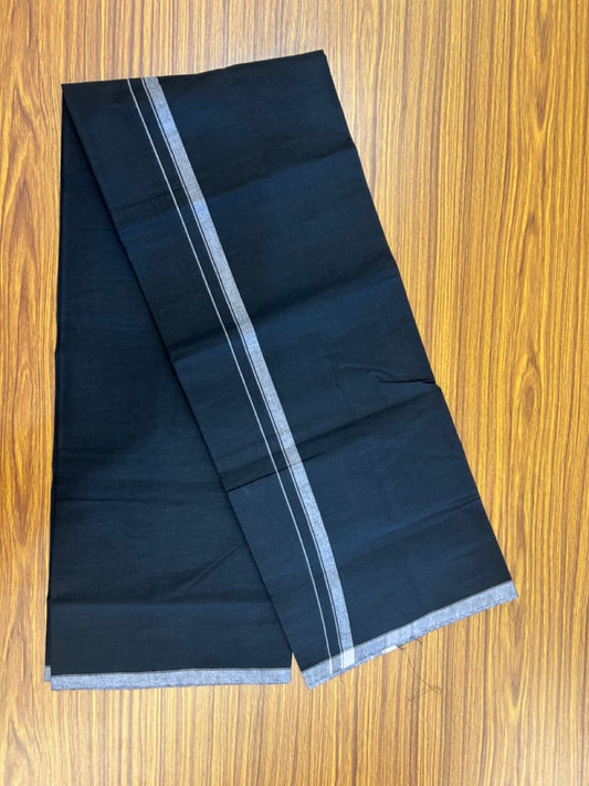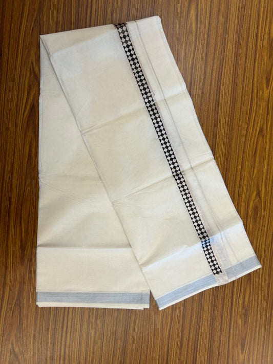 22% Discount!! KaithariKada Balaramapuram 100% Cotton Double Off White - (Ubleached) Mundu/Dhoti - 80x80 - 1.5 inch Silver Kasav & Black Printed Design Kara - 4 mtr (8 muzham)- 27 KK5253 GAN
