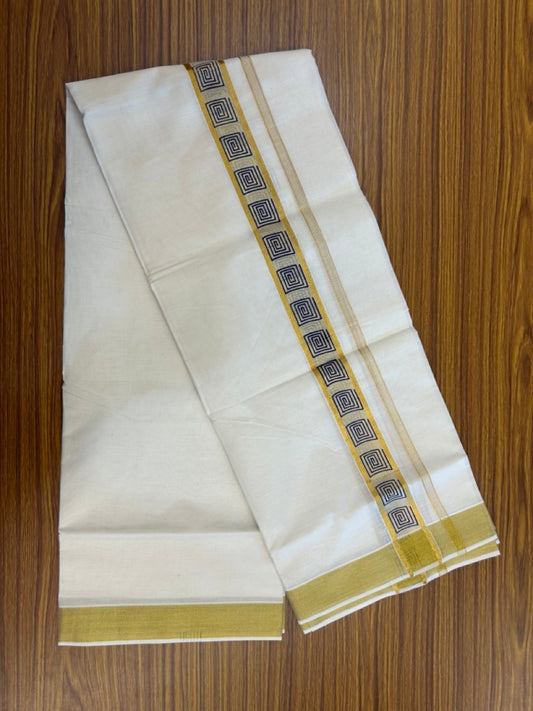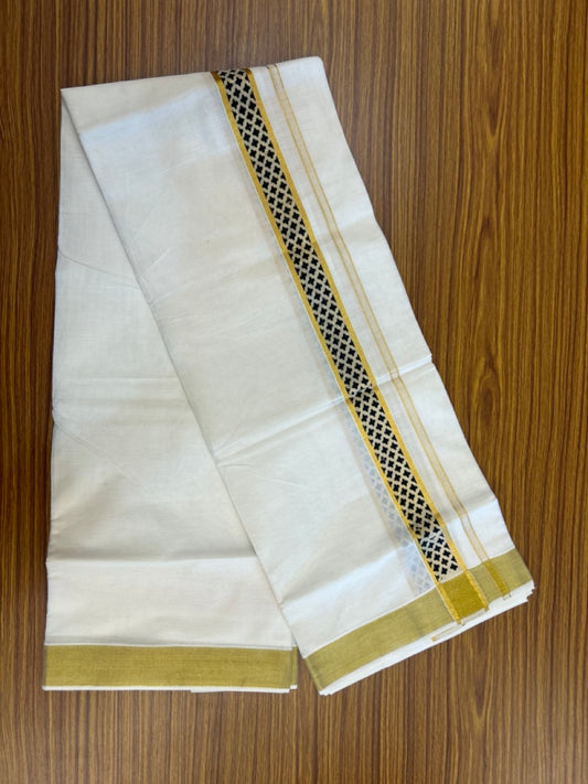 22% Discount!! KaithariKada Balaramapuram 100% Cotton Double Off White - (Ubleached) Mundu/Dhoti - 80x80 - 1.5 inch Gold Kasav & Black Printed Design Kara - 4 mtr (8 muzham)- 33 KK5253 GAN