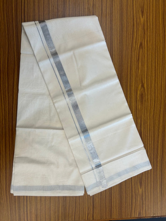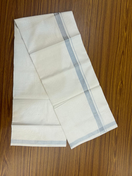 24% Discount !! KaithariKada Balaramapuram 100% Cotton Off white Single Mundu/Dhoti - Twisted 60s Thread- 0.75 inch Silver Kara (2 meter / 4 muzham) - 2 KK5245 GL