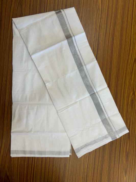 24% Discount !! KaithariKada Balaramapuram 100% Cotton Pure white Single Mundu/Dhoti - Twisted 60s Thread- 0.75 inch Silver Kara (2 meter / 4 muzham) - 3 KK5245 GL
