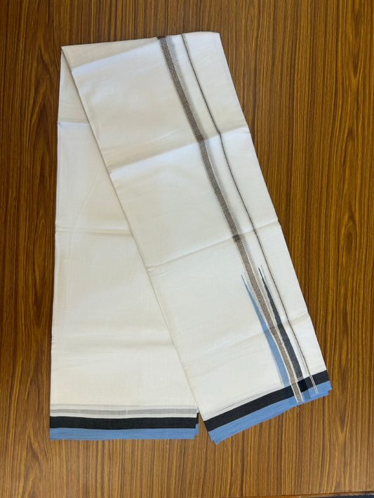 23% Discount ! New! KaithariKada Balaramapuram 100% Cotton Pure white Double Mundu/Dhoti - (100x80)s - Blue Black Chutty Silver Kasav - 60 KK5252 CKS