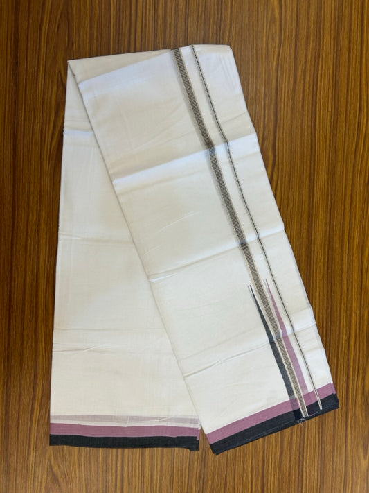 23% Discount ! New! KaithariKada Balaramapuram 100% Cotton Pure white Double Mundu/Dhoti - (100x80)s - Pink Purple Black Chutty Silver Kasav - 61 KK5252 CKS