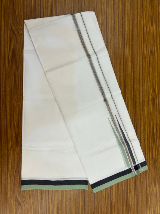 23% Discount ! NEW! KaithariKada Balaramapuram 100% Cotton Pure white Double Mundu/Dhoti - (100x80)s - Green Black Chutty Silver Kasav - 64 KK5252 CKS