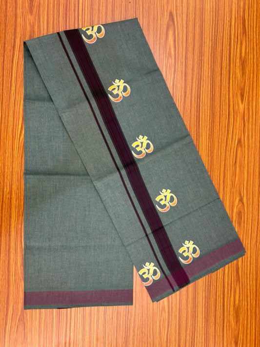 21% Discount ! Kaitharikada - Pure Cotton - Single Kaily / Lungi -(40s)- 1.25 inch Purple Striped Ohm Printed Design kara with Green Shaded colour body (2 meter / 4 muzham) - 48 KK8028 GAN
