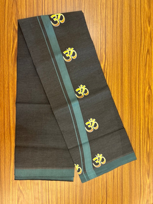 21% Discount ! Kaitharikada - Pure Cotton - Single Kaily / Lungi -(40s)- 1 inch Dark Slate Grey Striped Ohm Printed Design kara with Black Shaded colour body (2 meter / 4 muzham) - 53 KK8028 GAN