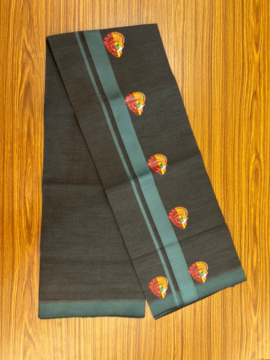 9% Discount !! Kaitharikada - Pure Cotton - Single Kaily / Lungi - (40s) - 0.5 inch Printed Theyyam Kadhakali Printed Design kara with Dark Green colour body (2 meter / 4 muzham) - 22 KK8028 GAN