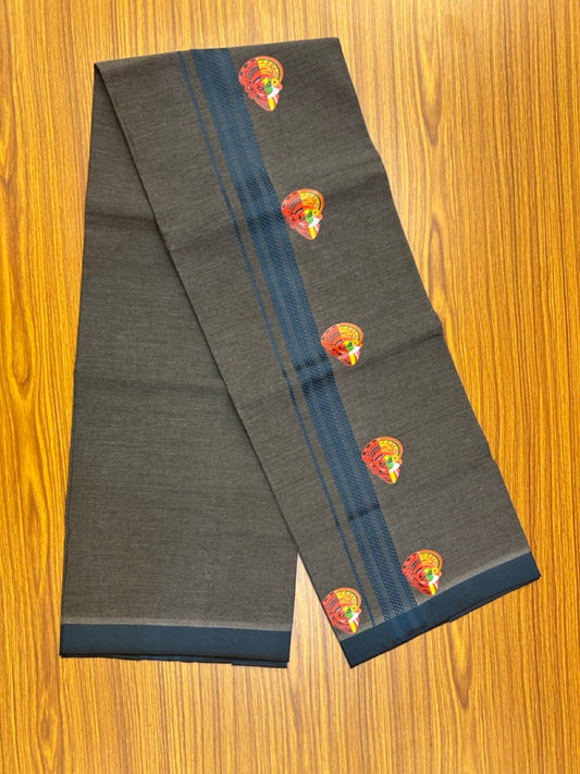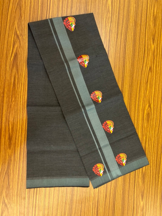 9% Discount !! Kaitharikada - Pure Cotton - Single Kaily / Lungi - (40s) - 0.5 inch Printed Kadhakali Design kara with Grey colour body (2 meter / 4 muzham) - 28 KK8028 GAN