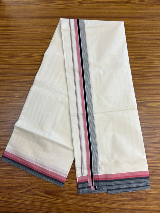 20% Discount ! KaithariKada Balaramapuram 100% Cotton Double Off White (unbleached) Mundu/Dhoti- 100x80- 1.5 inch Silver Kasav Pink & Black Striped Kara 4 mtr (8.5 muzham) - 46 KK5251 PMC