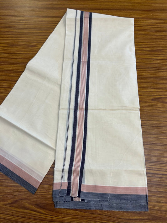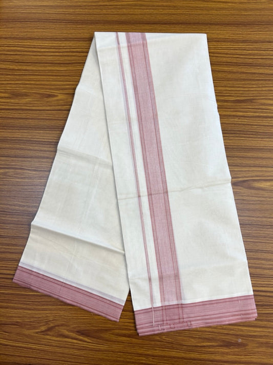 20% Discount ! KaithariKada Balaramapuram 100% Cotton Double Off White (unbleached) Mundu/Dhoti- 100x80- 1.5 inch Silver Kasav Brown & Dusty Pink Striped Kara 4 mtr (8.5 muzham) - 47 KK5251 PMC