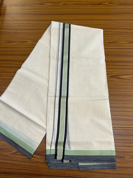 20% Discount! KaithariKada Balaramapuram 100% Cotton Double Off White (unbleached) Mundu/Dhoti- 100x80- 1.5 inch Silver Kasav Black & Pista Green striped Kara 4 mtr (8.5 muzham) - 71 KK5251 PMC