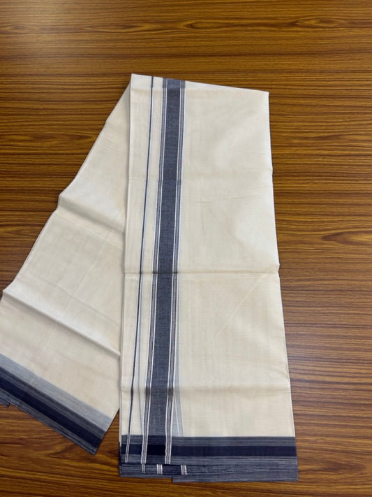 20% Discount! KaithariKada Balaramapuram 100% Cotton Double Off White (unbleached) Mundu/Dhoti- 100x80- 1.5 inch Silver Kasav Navy Blue shaded striped Kara 4 mtr (8.5 muzham) - 74 KK5251 PMC