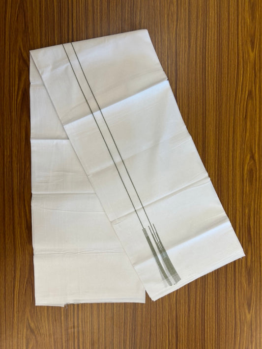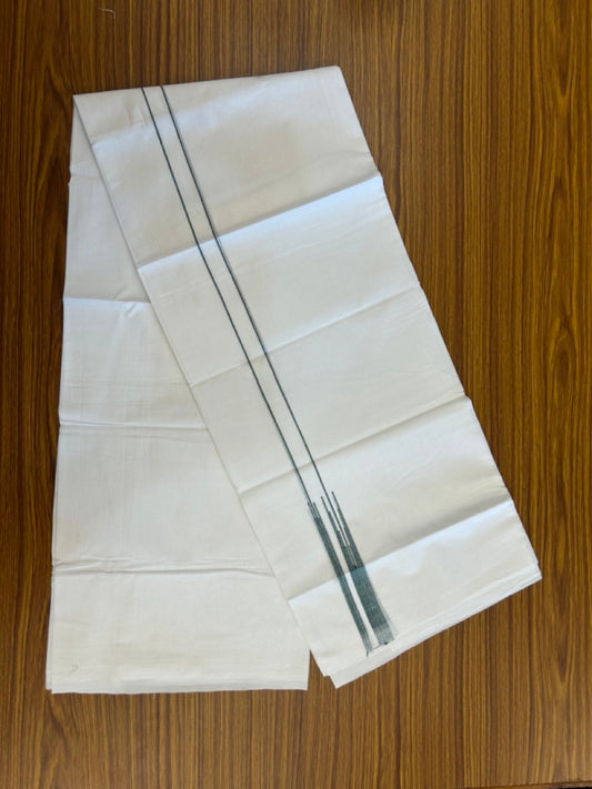 20% Discount!! New!! KaithariKada Balaramapuram 100% Cotton Pure White Double Mundu/Dhoti - (100x80)s - 0.75 inch Dark Green Line chutty - 16 KK5249 VIN