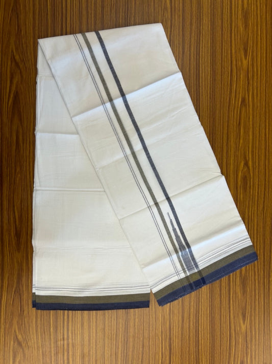 20% Discount ! New! KaithariKada Balaramapuram 100% Cotton Pure white Double Mundu/Dhoti - (100x80)s - 1.5 inch Navy Sage Green chutty - 19 KK5249 VIN