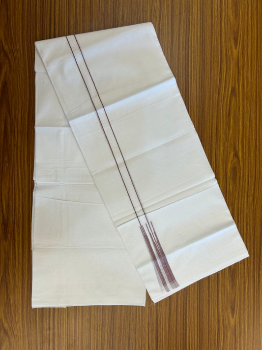 20% Discount!! New!! KaithariKada Balaramapuram 100% Cotton Pure White Double Mundu/Dhoti - (100x80)s - 0.75 inch Wine Line chutty - 2 KK5249 VIN