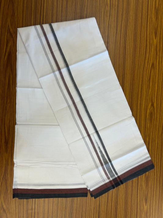 20% Discount ! New! KaithariKada Balaramapuram 100% Cotton Pure white Double Mundu/Dhoti - (100x80)s - 1.5 inch Coffee Brown Black chutty - 23 KK5249 VIN